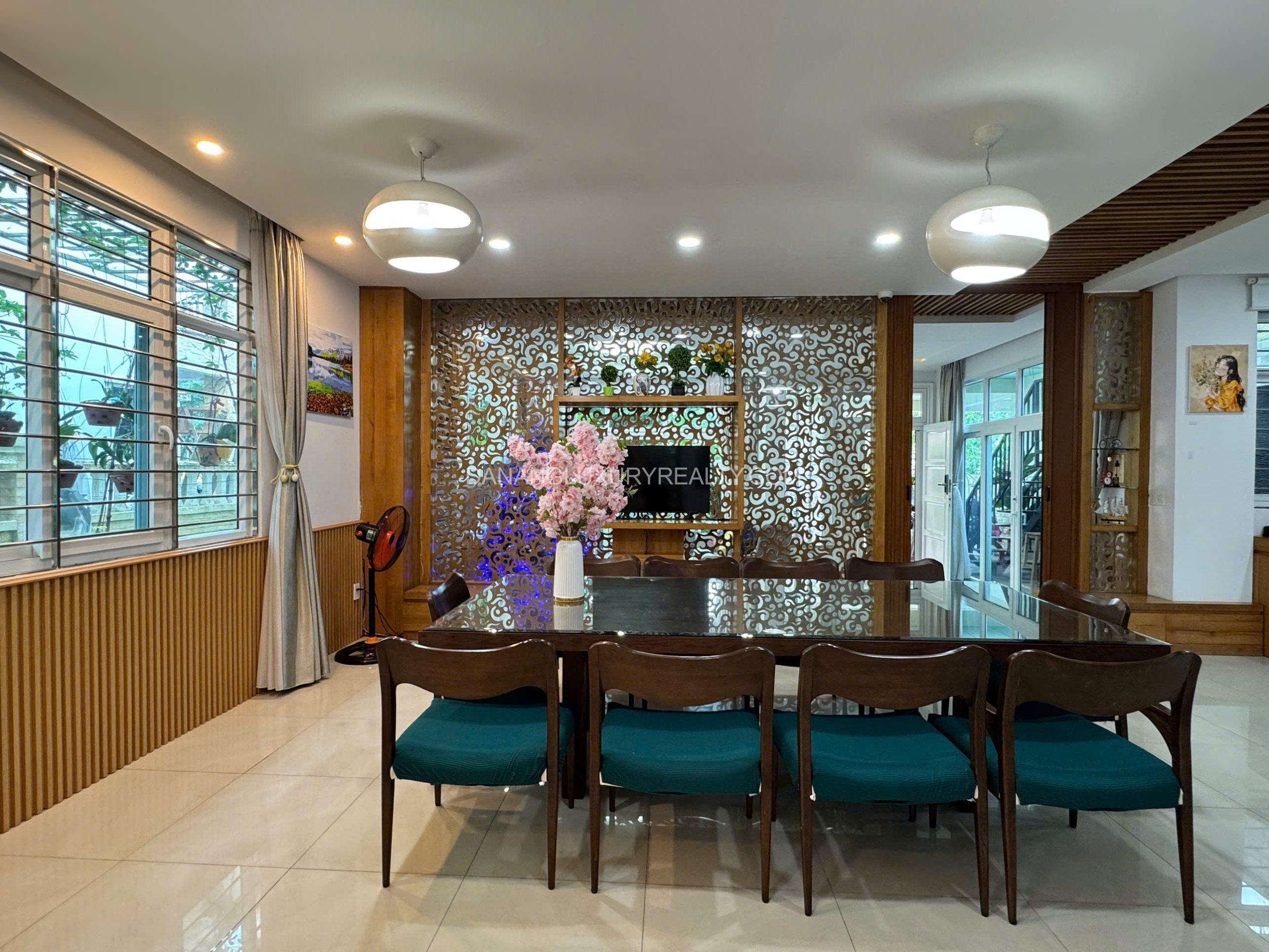 This beautiful villa is located in Phuc Loc Vien, one of Da Nang’s most prestigious and secure residential compounds. The area is known for its quiet atmosphere, lush greenery, and high level of security, making it ideal for families and foreign professionals seeking a peaceful yet convenient living environment.