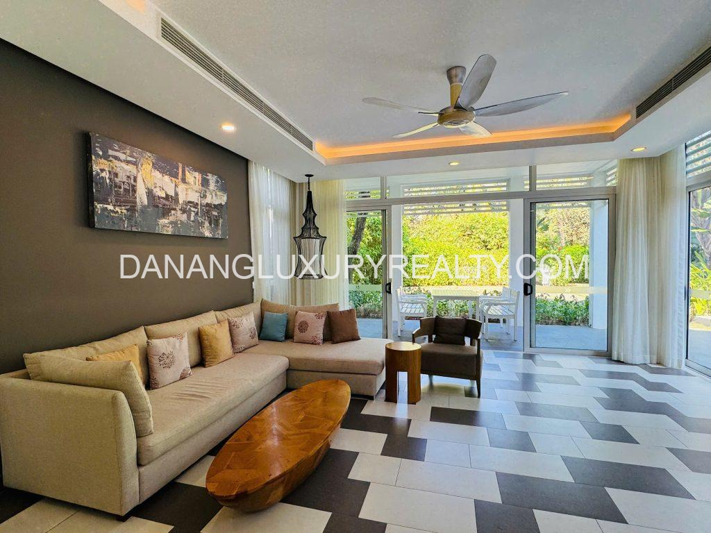 Premier Village Da Nang villa for rent offering an exclusive beachfront lifestyle within a prestigious 5-star resort community. This spacious villa features a 500m² land area with 400m² of usable space, designed over 3 floors plus a basement. The property includes 5 large en-suite bedrooms, bright open living areas, high-quality interior finishes, a private swimming pool, and a lush garden ensuring absolute privacy. Residents enjoy direct private beach access, professional resort management, and 24/7 security. Conveniently located with easy access to Da Nang city center, airport, dining, and entertainment, this villa is ideal for expatriates, high-end families, and long-term tenants seeking refined beachfront living in Da Nang.