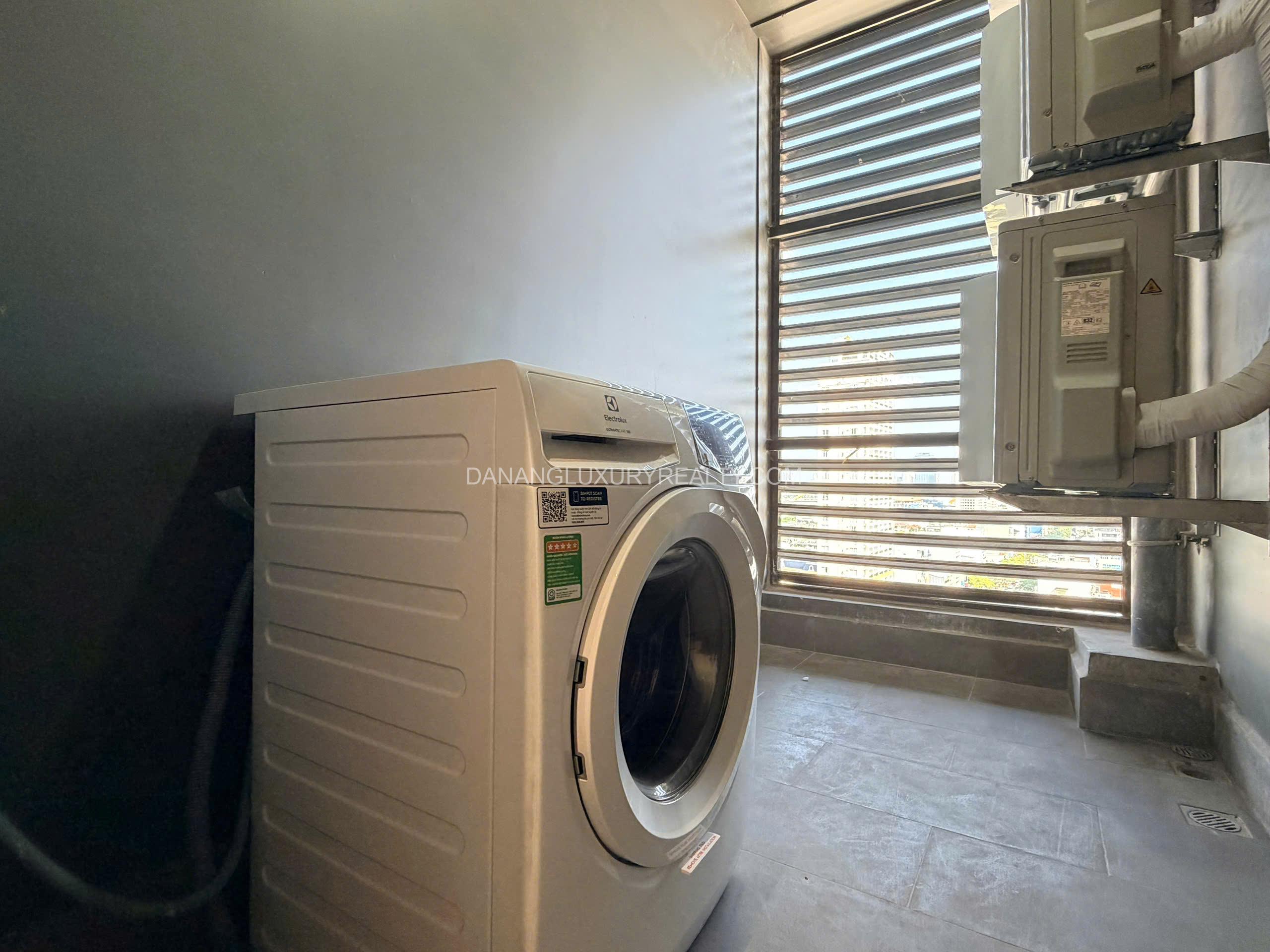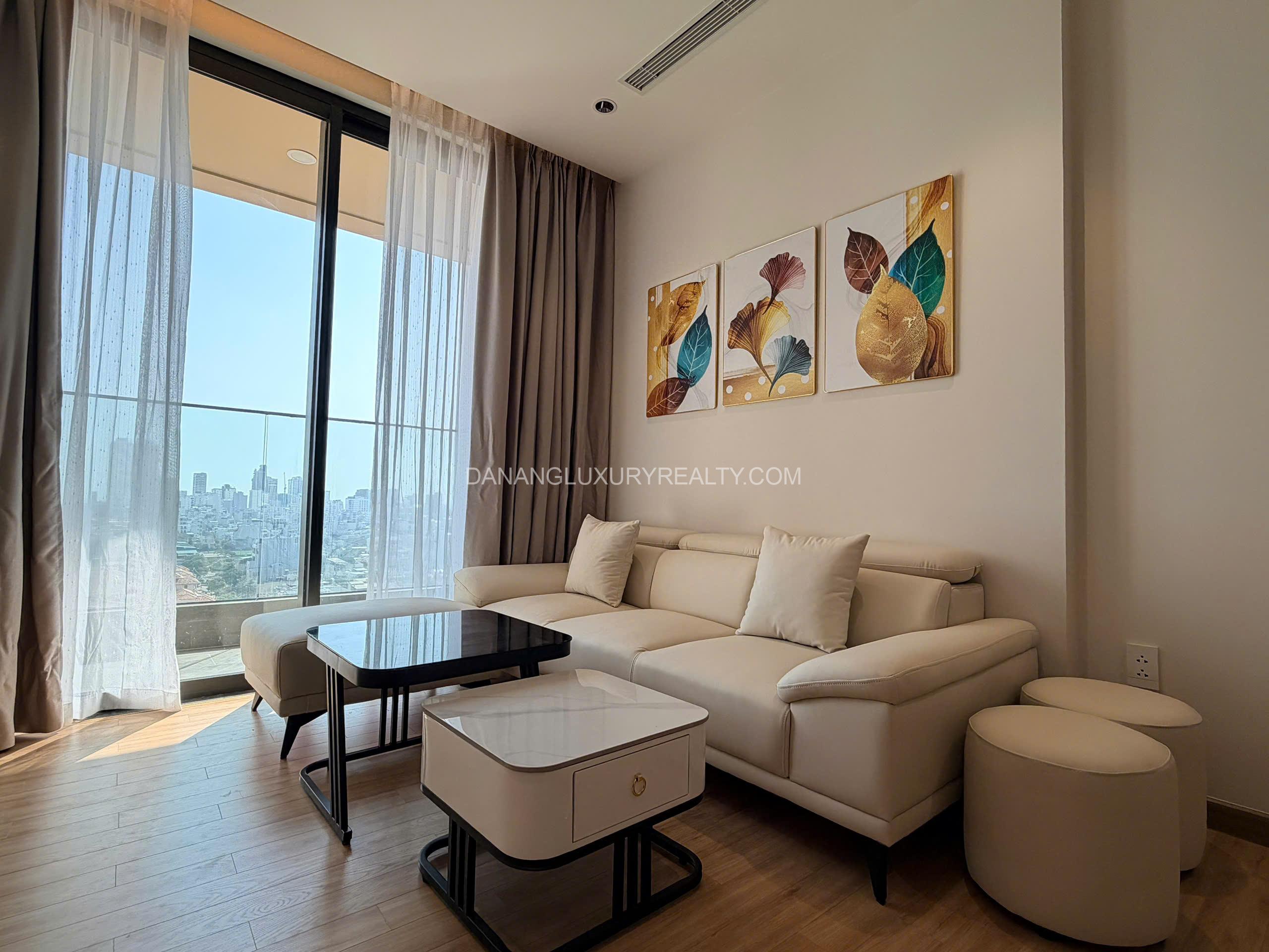 Căn hộ cho thuê có view hướng biển thoáng mát, đón gió tự nhiên, không gian yên tĩnh và thư giãn. Vị trí đắc địa, dễ dàng di chuyển đến trung tâm, sông Hàn và bãi biển.